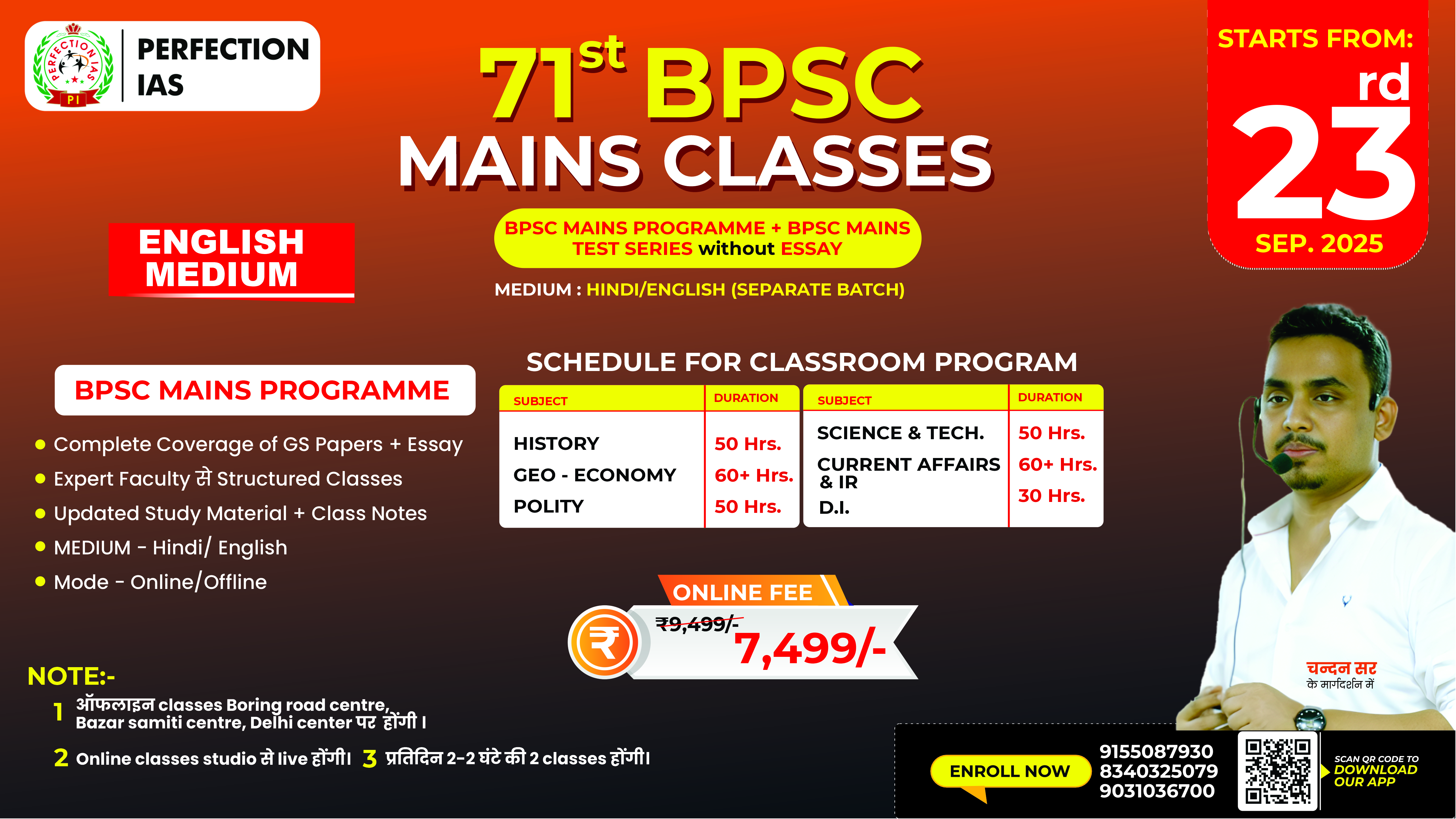 71st BPSC MAINS CLASSES Without ESSAY with Mains Test Series (English Medium)