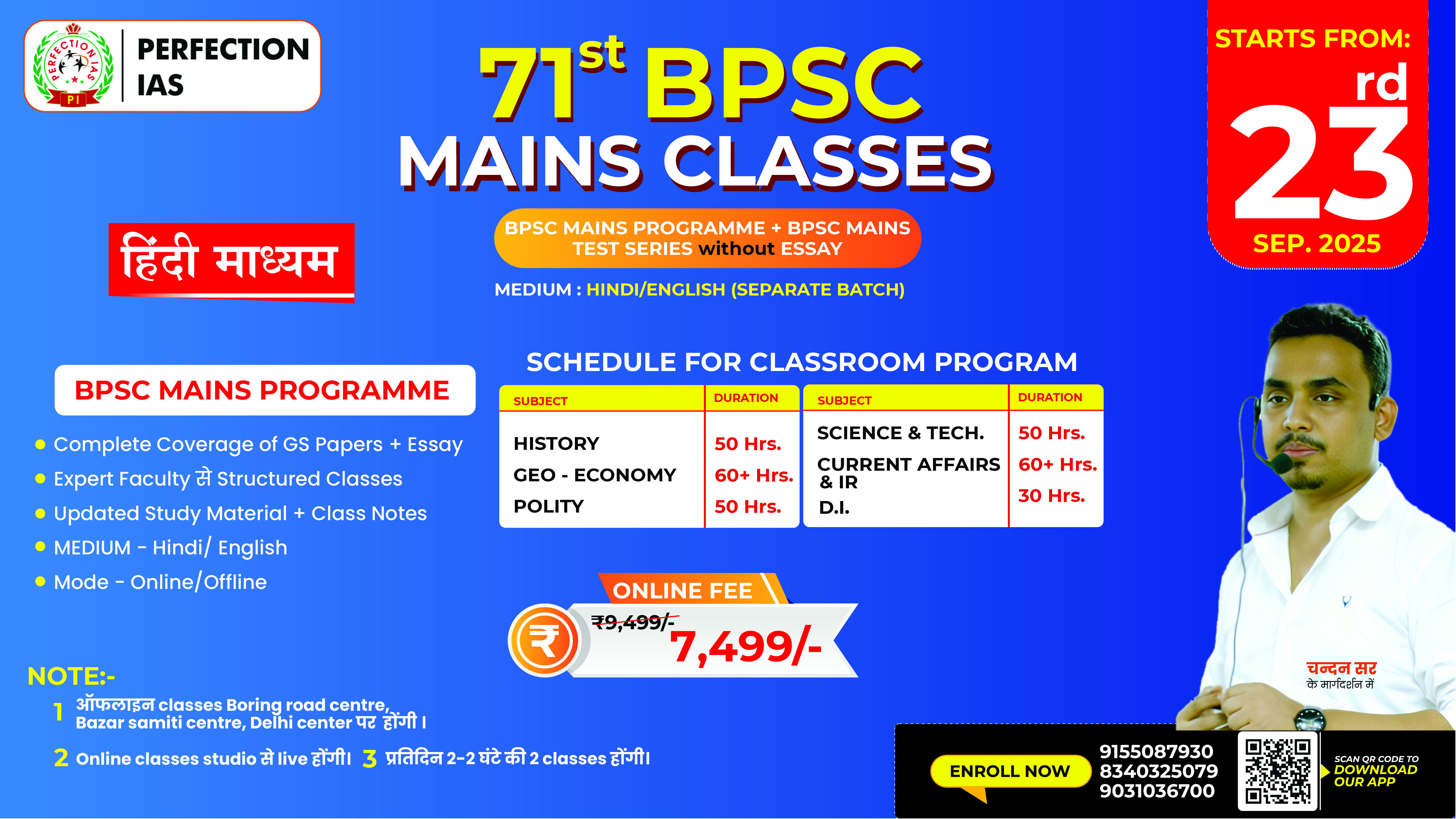 71st BPSC MAINS CLASSES Without ESSAY with Mains Test Series (Hindi Medium)